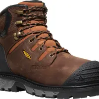 Electrical hazard (EH) or Electric Shock Resistant (ESR) footwear helps provide a secondary source of protection in case of accidental outsole contact with live electrical circuits, KEEN.TOUGHSOLE oil- and slip-resistant outsole that is lighter weight and more durable than rubber, PFAS-free
