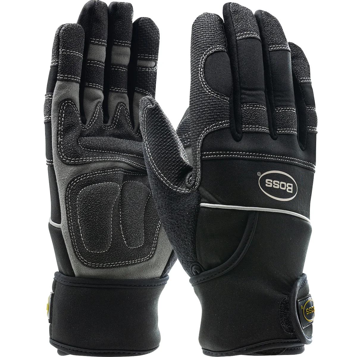 Boss® Synthetic Leather Palm with PVC Sandy Grip Patches and Anti-Vibration Pads - Neoprene Wraparound Wrist