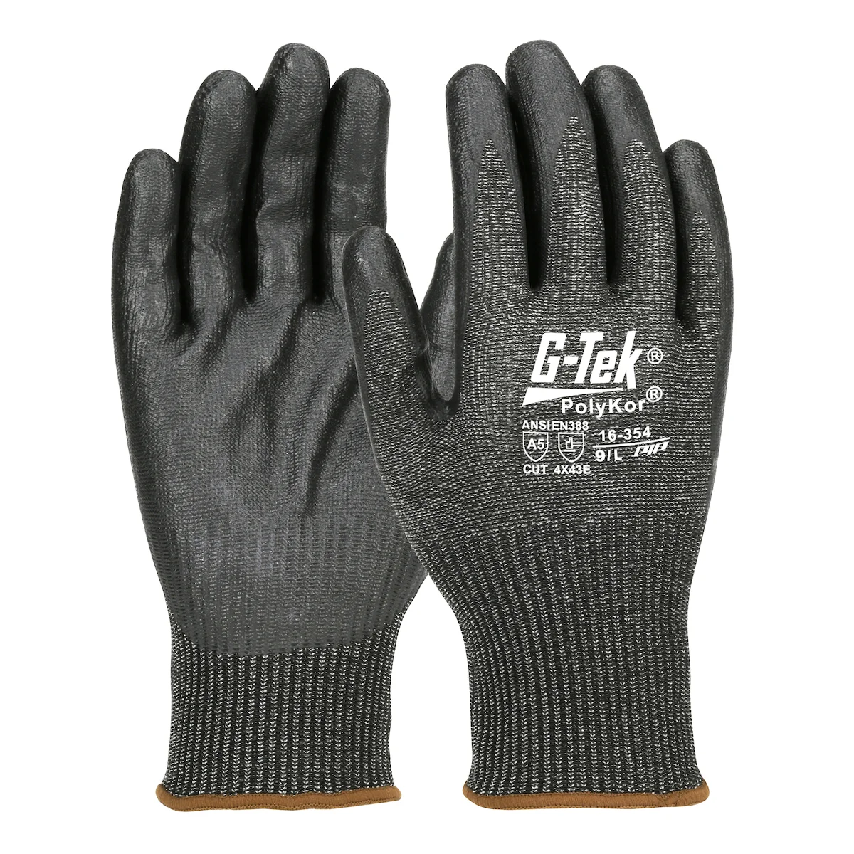G-Tek® PolyKor® Polykor Glove with Black Nitrile Coated Flat Grip on Palm & Fingers