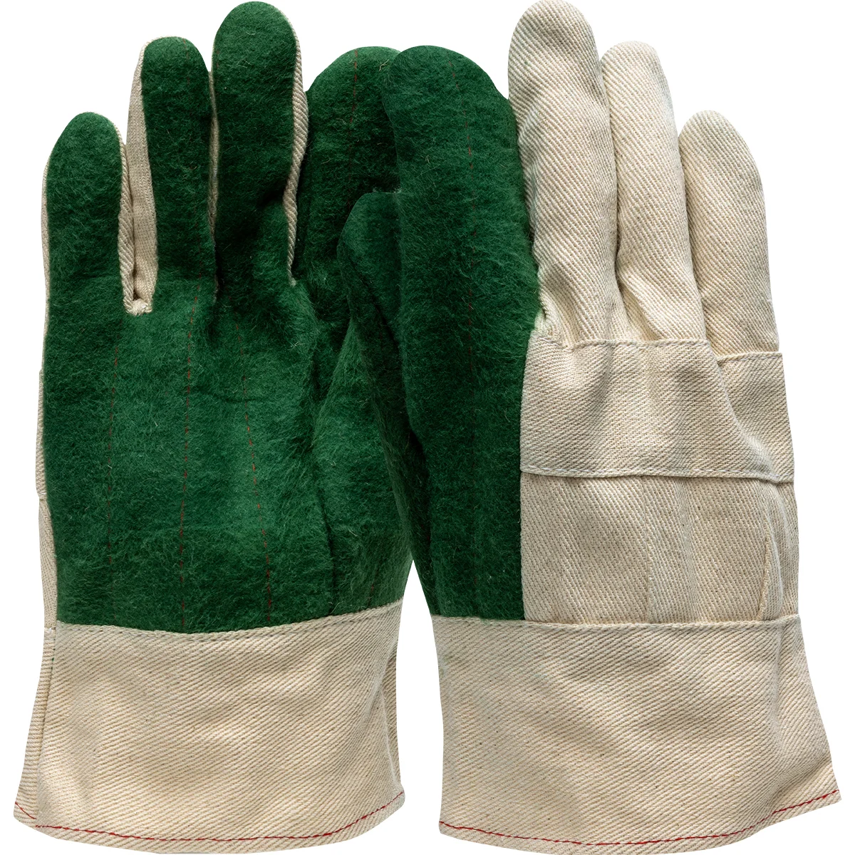 HomeCategoriesHand & Arm ProtectionHand ProtectionBoss® 3-Ply Hot Mill Nap-Out Green Palm W Band Top Cuff Straight Thumb