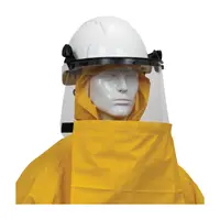 Splash protection designed for pressure washing applications. The reinforced closures and overlaps, as well as a 12" x 12" shroud that attaches to a faceshield, provide the enhanced protection needed to help prevent water from entering the suit.