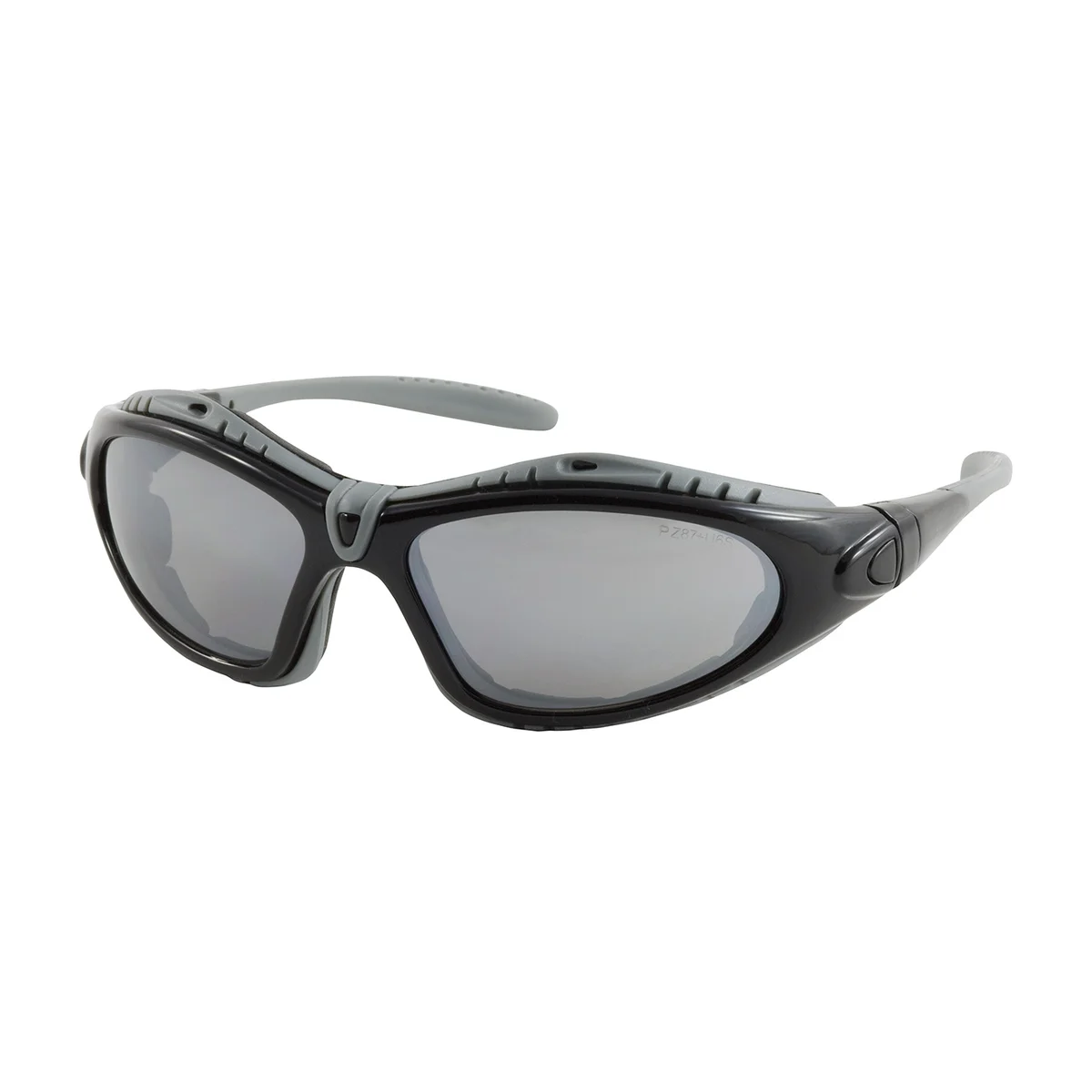 Fuselage™ Full Frame Safety Glasses with Black Frame, Foam Padding, Silver Mirror Lens and Anti-Scratch / Anti-Fog Coating