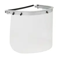 Aluminum brackets provide secure face shield mounting for tough jobs. Shield and hard hat are not included. Always wear approved eye protection in conjunction with face protection products.