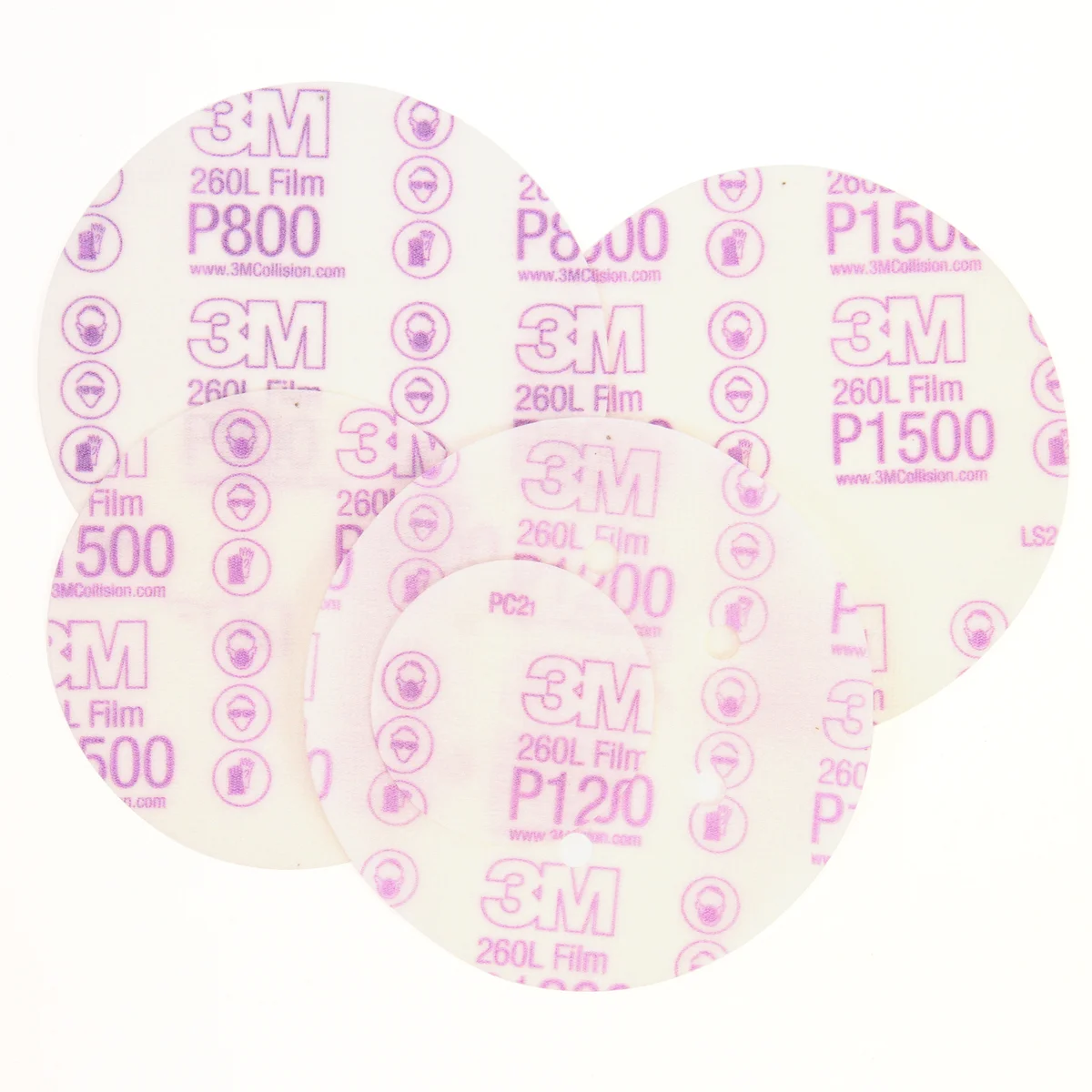 3M™ Hookit™ Film Disc 260L is ideal for auto body applications including blending, scuffing, paint prep and removing paint defects. Choose aluminum oxide mineral cutting surfaces from P600 to P1500, all on durable film backing. Several versions of the disc feature our 5- or 6-hole design to help keep dust away from the disc surface. Hookit™ attachment makes it easy to change and reuse discs.