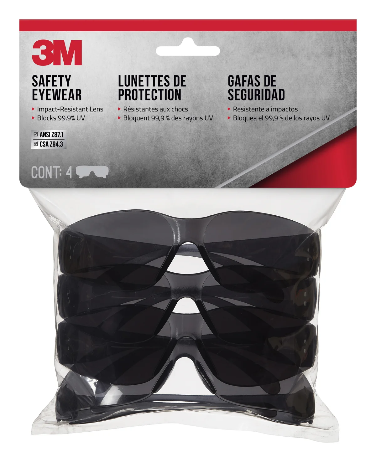 3M™ Safety Eyewear 90954H4-DC, Gray, Gray Lens, Anti-Scratch, 4/pack, 10 packs/case