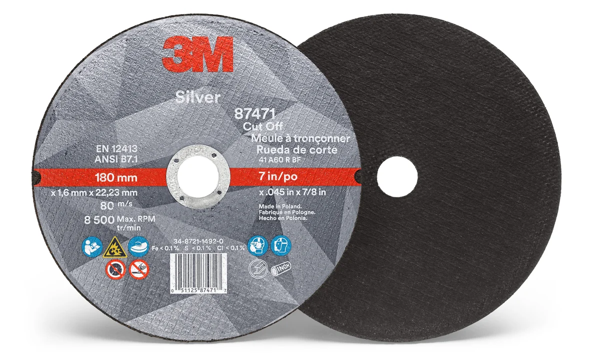 HomeCategoriesAbrasivesAbrasive Wheels3M™ Silver Cut-Off Wheel, 87471, 36+, T1, 7 in x 0.045 in x 7/8 in, 25/Carton, 50 ea/Case