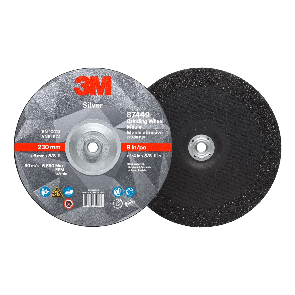 HomeCategoriesAbrasivesAbrasive Wheels3M™ Silver Depressed Center Grinding Wheel, 87449, 36+, T27 Quick Change, 9 in x 1/4 in x 5/8 in-11, 10/Carton, 20 ea/Case