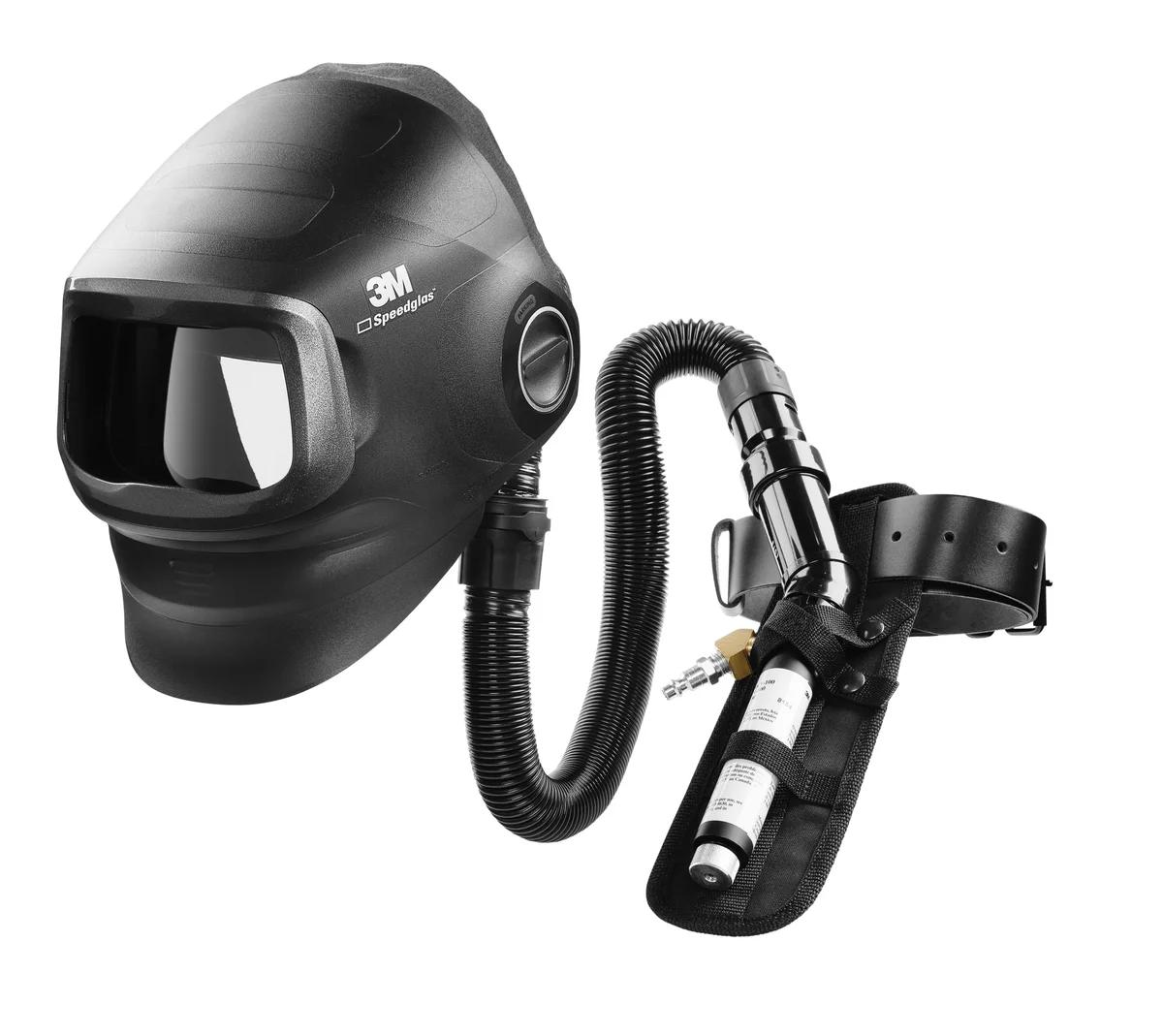 3M™ Speedglas™ G5-01 Heavy Duty Welding Helmet with 3M™ with V-100 Vortex™ Cooling Valve Assembly and carry bag.