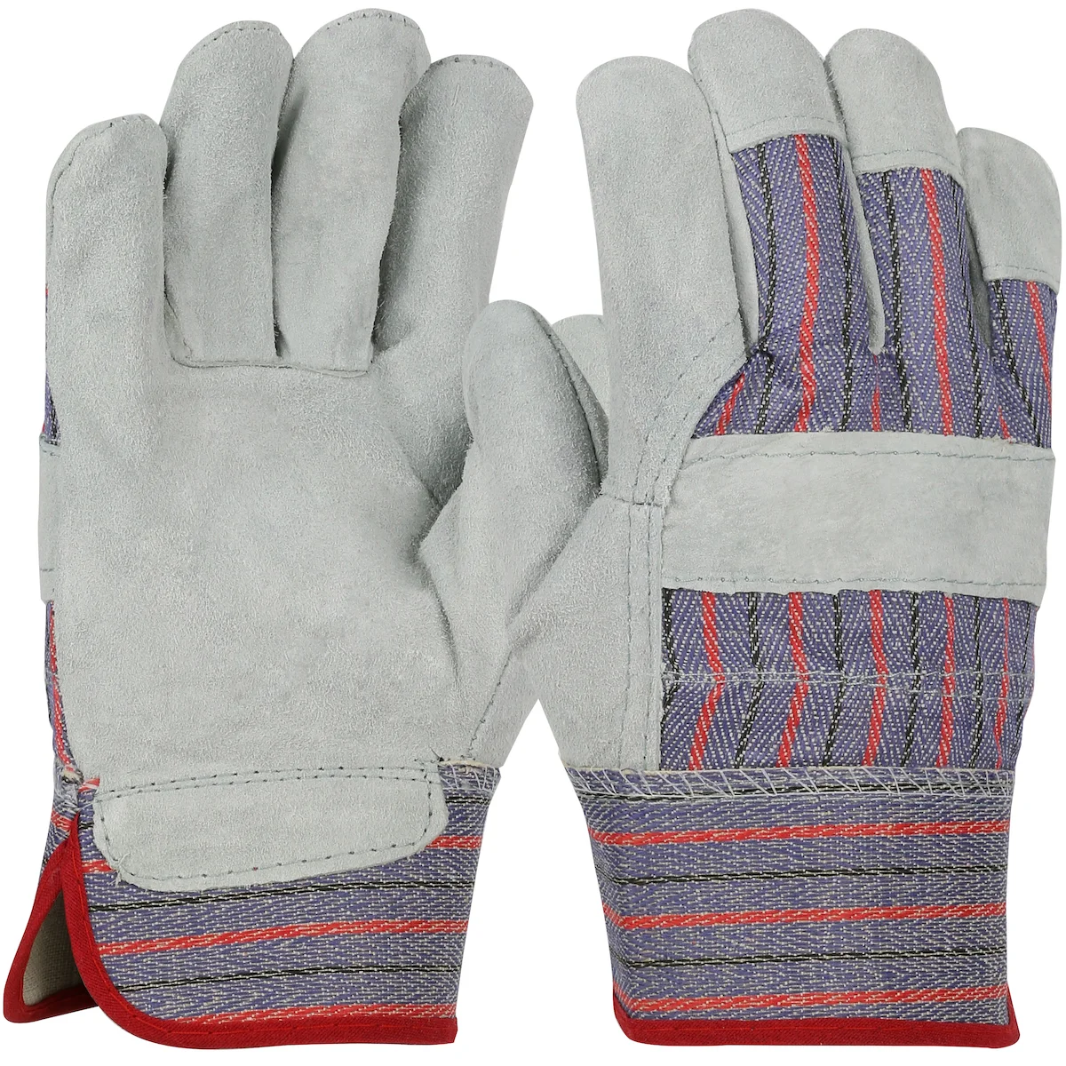 PIP® Economy Grade Split Cowhide Leather Palm Glove with Fabric Back - Rubberized Safety Cuff