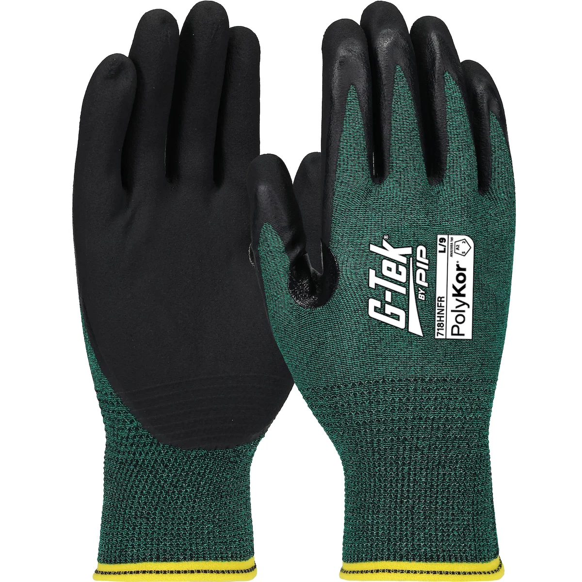 G-Tek® PolyKor® Polykor Glove with Black Nitrile Coated Flat Grip on Palm & Fingers