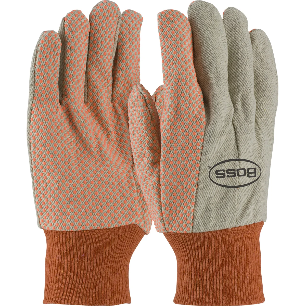 Boss® Premium Grade Cotton/Poly Canvas Glove with PVC Dotted Grip on Palm, Thumb and Index Finger - 10 oz.