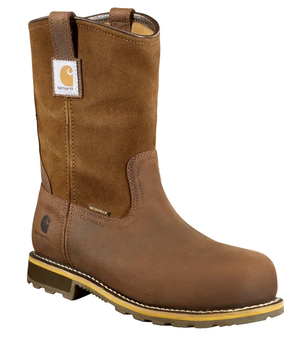 CARHARTT Men's Traditional Welt 10" Waterproof Nano Toe Wellington,Brown oil tanned leather and suede,Nano Composite safety toe - lightweight, non-metallic, and non-conductive to heat or cold. Meets or exceeds ASTM 2413-24 standards. Slip Resistance meets or exceeds ASTM F3445-24 standard.