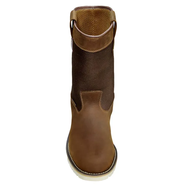 CARHARTT Men's 10" Waterproof Wellington Wedge Boot,Brown oil tanned leather and abrasion resistant durable fabric,Soft Toe styles meet ASTM F2892-24 standard. Slip Resistance meets or exceeds ASTM F3445-24 standard.