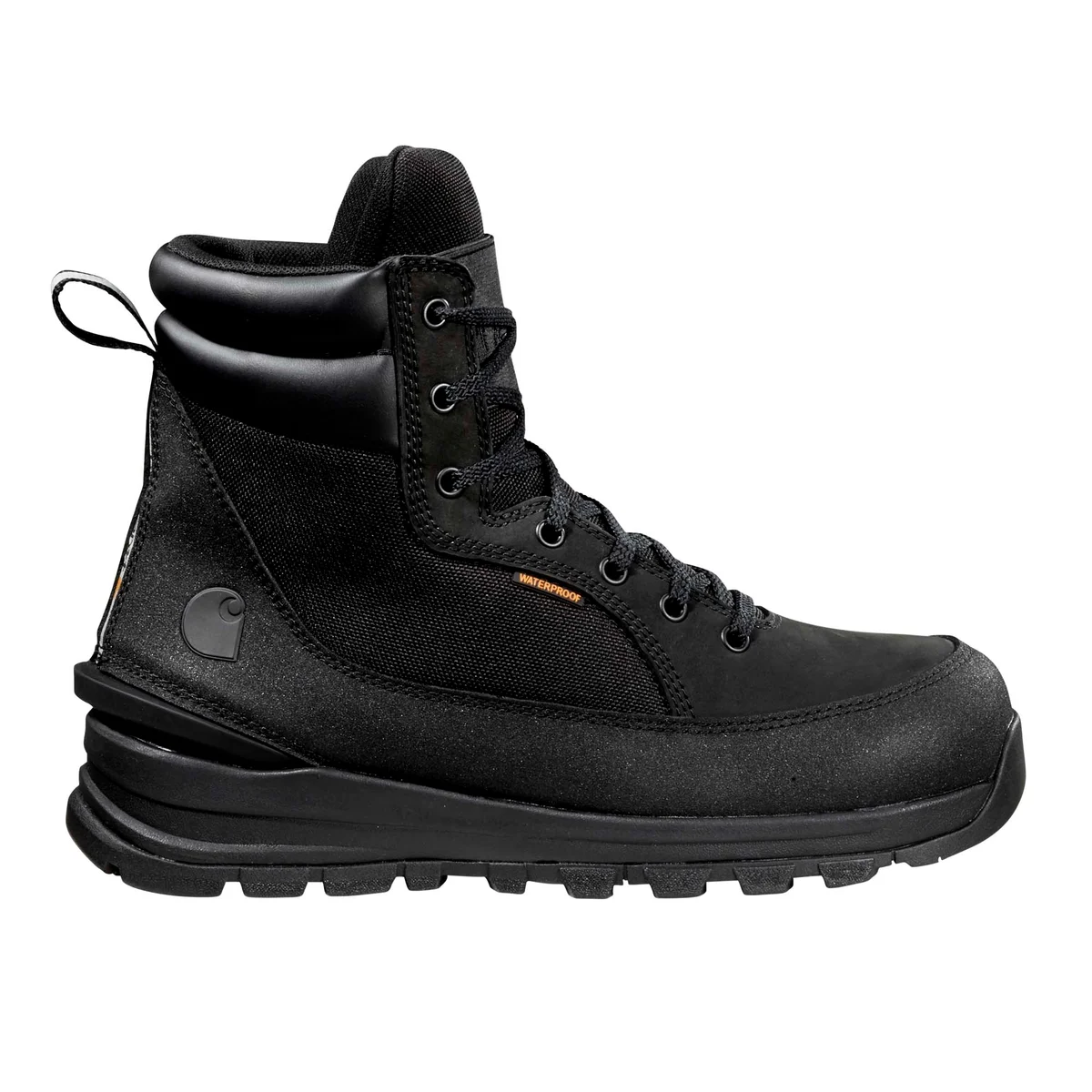 CARHARTT Men's Gilmore 6" Waterproof Boot,Black Helcor and nubuck leather with abrasion resistant durable fabric,Soft Toe styles meet ASTM F2892-24 standard. Slip Resistance meets or exceeds ASTM F3445-24 standard.