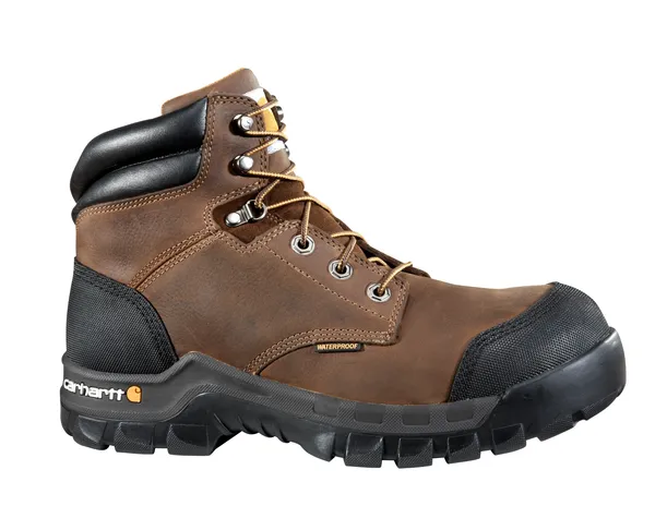 CARHARTT Men's Rugged Flex 6" Waterproof Composite Toe Work Boot,Brown oil tanned leather,Composite safety toe - lightweight, non-metallic, and non-conductive to heat or cold. Meets or exceeds ASTM 2413-24 standards. Slip Resistance meets or exceeds ASTM F3445-24 standard.
