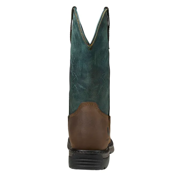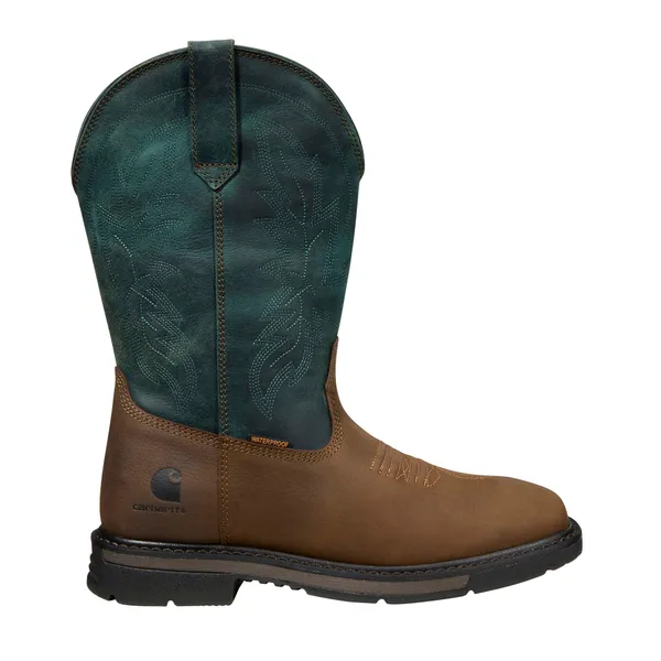 CARHARTT Women's Montana 11" Waterproof Square Toe Wellington,Light brown oil leather and teal leather shaft,Soft Toe styles meet ASTM F2892-24 standard. Slip Resistance meets or exceeds ASTM F3445-24 standard.