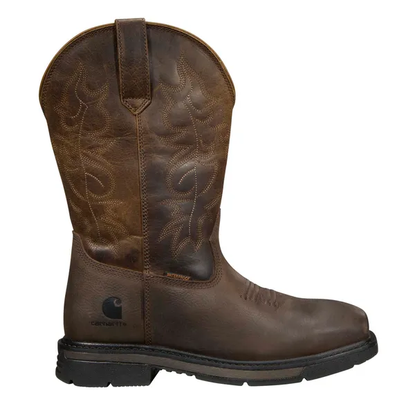CARHARTT Women's Montana 11" Waterproof Nano Square Toe Wellington,Dark brown oil leather with dark brown leather shaft,Nano Composite safety toe - lightweight, non-metallic, and non-conductive to heat or cold. Meets or exceeds ASTM 2413-24 standards. Slip Resistance meets or exceeds ASTM F3445-24 standard.