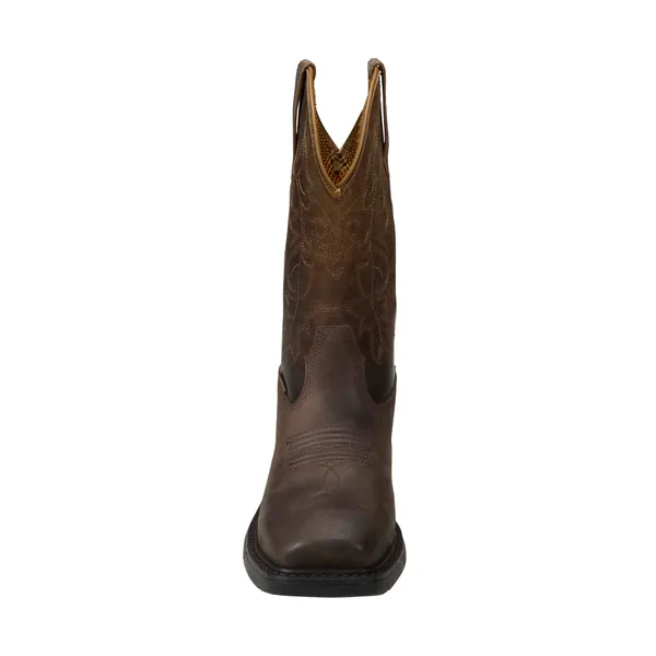 From sun up to sundown the Montana delivers comfort and durability for those who think a long day is just another day. This square toe style is crafted with rugged leather and a Storm Defender™ waterproof membrane for enhanced durability and protection. Pull them on and feel the cushion and arch support from the INSITE® footbed for nonstop comfort until you punch the clock.