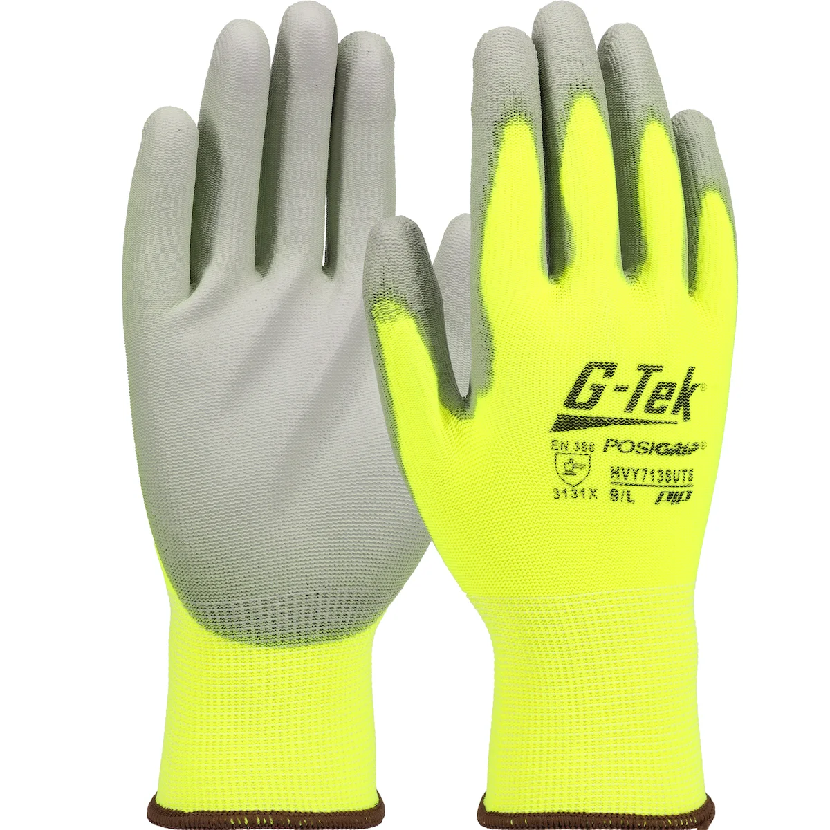 G-Tek® PosiGrip® Hi-Vis Seamless Knit Polyester Blend Glove with Polyurethane Coated Flat Grip on Palm & Fingers - Touchscreen