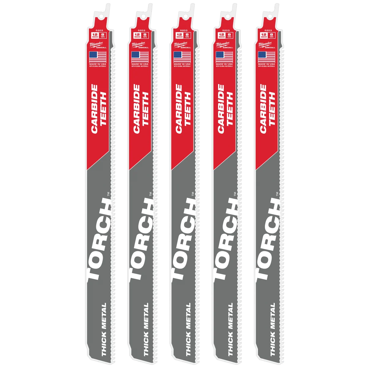 Milwaukee 12" 8 TPI TORCH™ with Carbide Teeth for Thick Metal SAWZALL® Blade (5 PK)