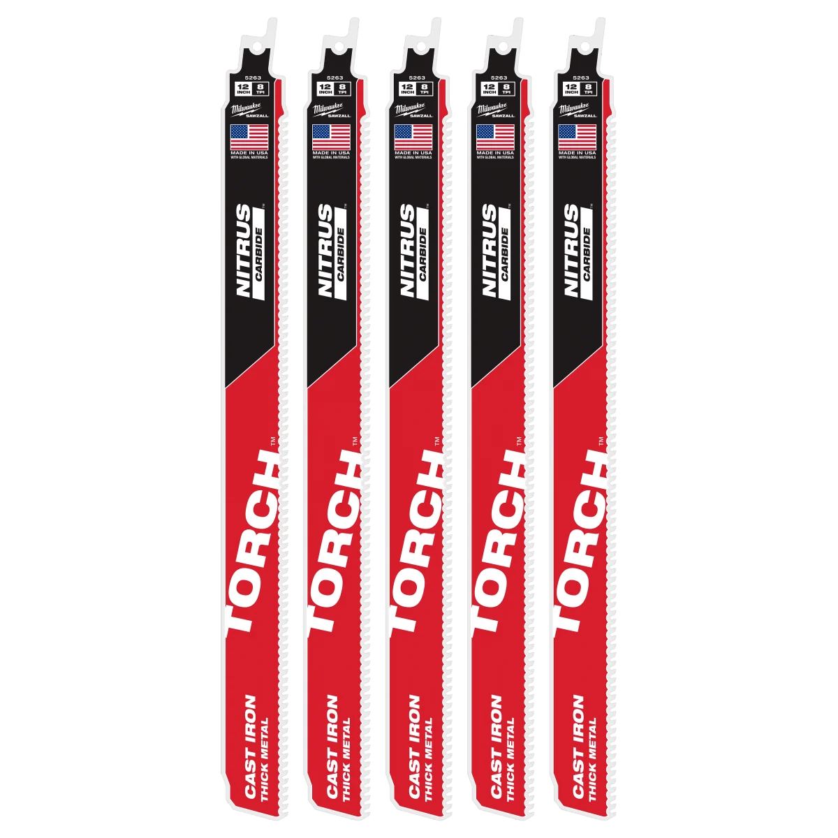 Milwaukee 12" 8 TPI TORCH™ with NITRUS™ Carbide SAWZALL® Blade for Cast Iron (5 PK)