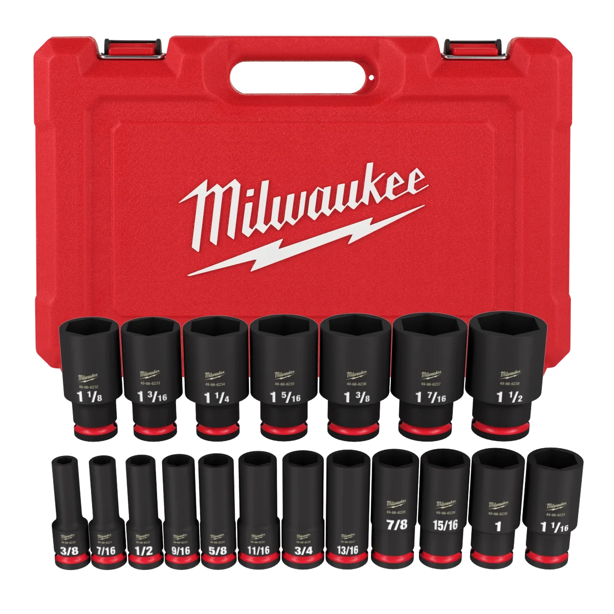 HomeCategoriesToolsHardwareMilwaukee 19PC SHOCKWAVE™ Impact Duty 1/2" Drive SAE Deep 6 Point Socket Set