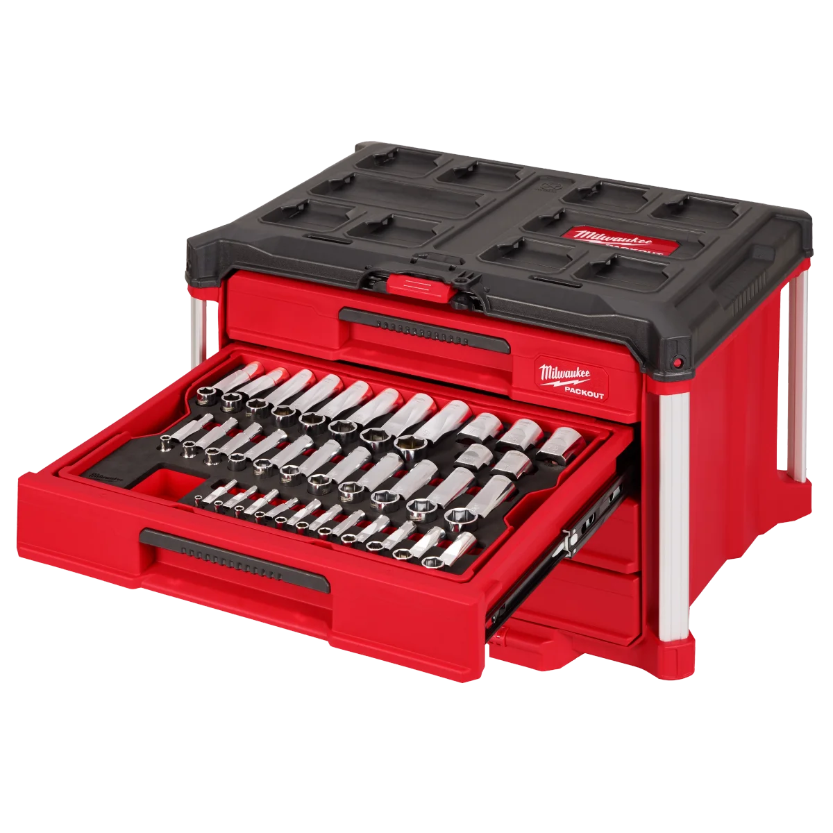 Milwaukee 242pc. 1/4”, 3/8”, & 1/2” Drive Metric & SAE Ratchet & Socket Set with PACKOUT™ 4-Drawer Tool Box