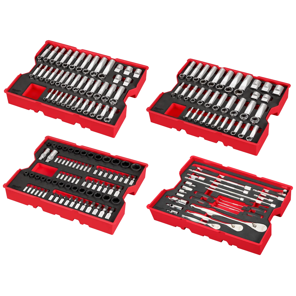Milwaukee 242pc. 1/4”, 3/8”, & 1/2” Drive Metric & SAE Ratchet & Socket Set with Trays for PACKOUT™ Drawers