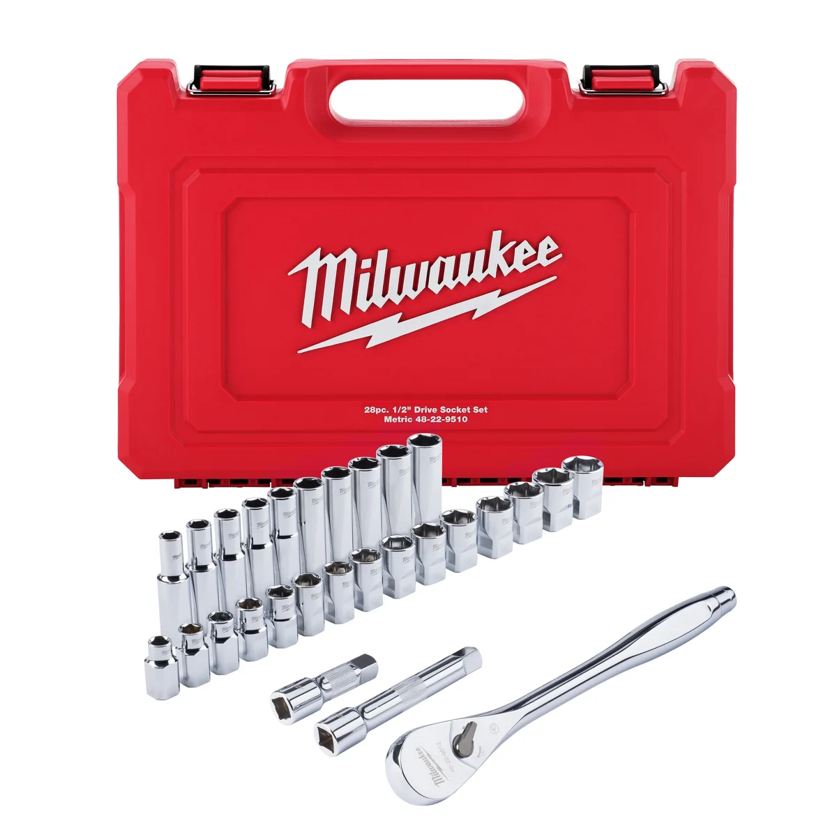 Milwaukee 28 pc 1/2" Drive Metric Ratchet and Socket Set with FOUR FLAT™ Sides