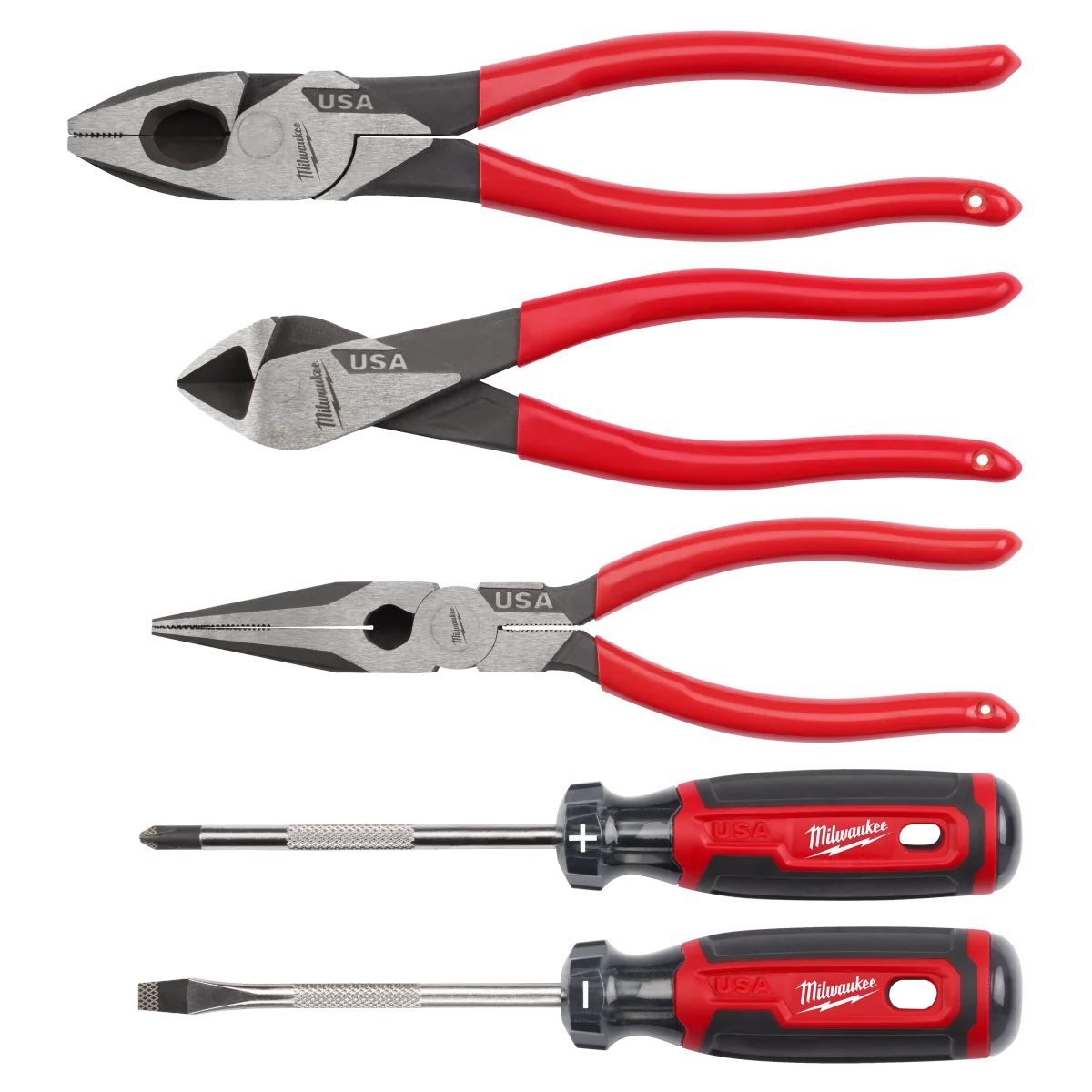 HomeCategoriesToolsHardwareMilwaukee 5PC Dipped Grip Cutting Pliers & Cushion Grip Screwdrivers Set (USA)