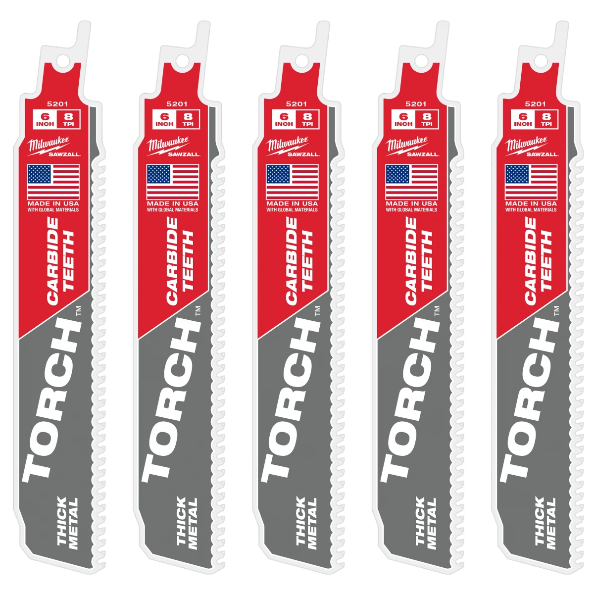 Milwaukee 6" 8TPI The TORCH™ with CARBIDE TEETH 5PK