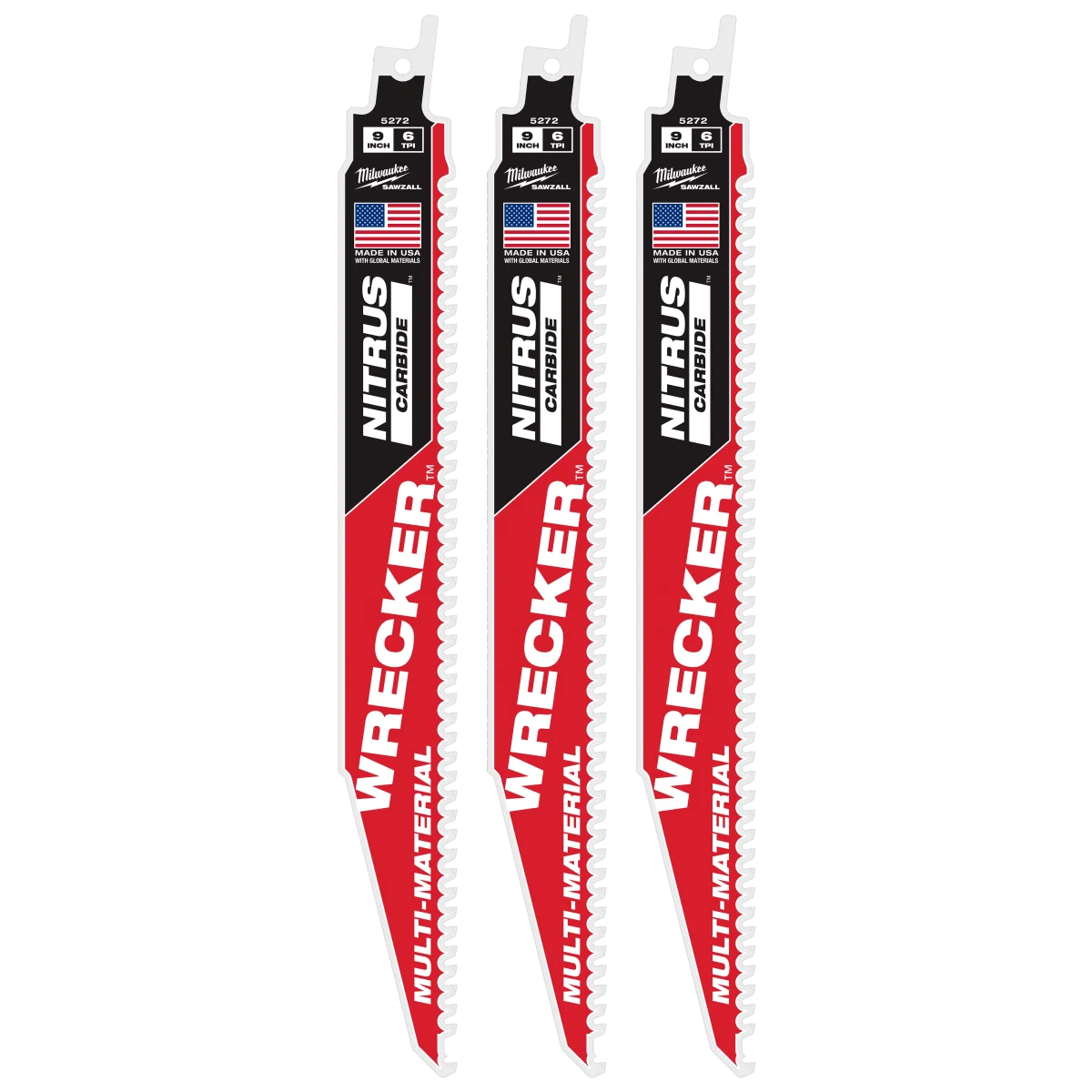 Milwaukee 9" WRECKER™ with NITRUS™ Carbide SAWZALL® Blade for Multi-Material (3 PK)