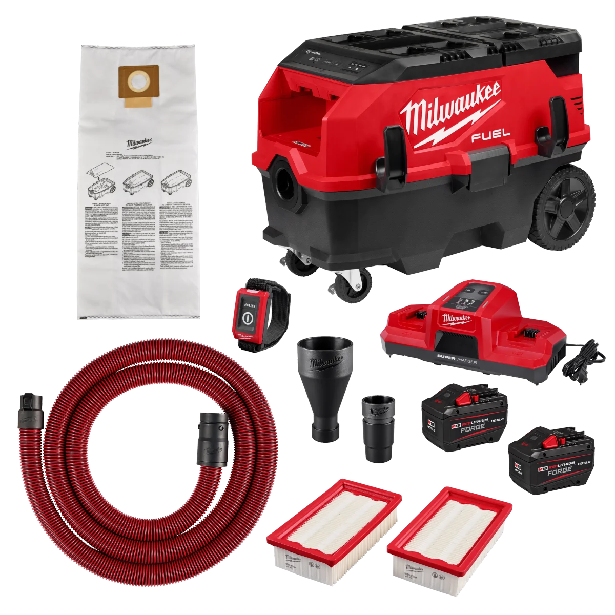 Milwaukee M18 FUEL™ 9 Gallon Dual Battery Dust Extractor w/ PACKOUT™ Compatibility and VACLINK™ Kit