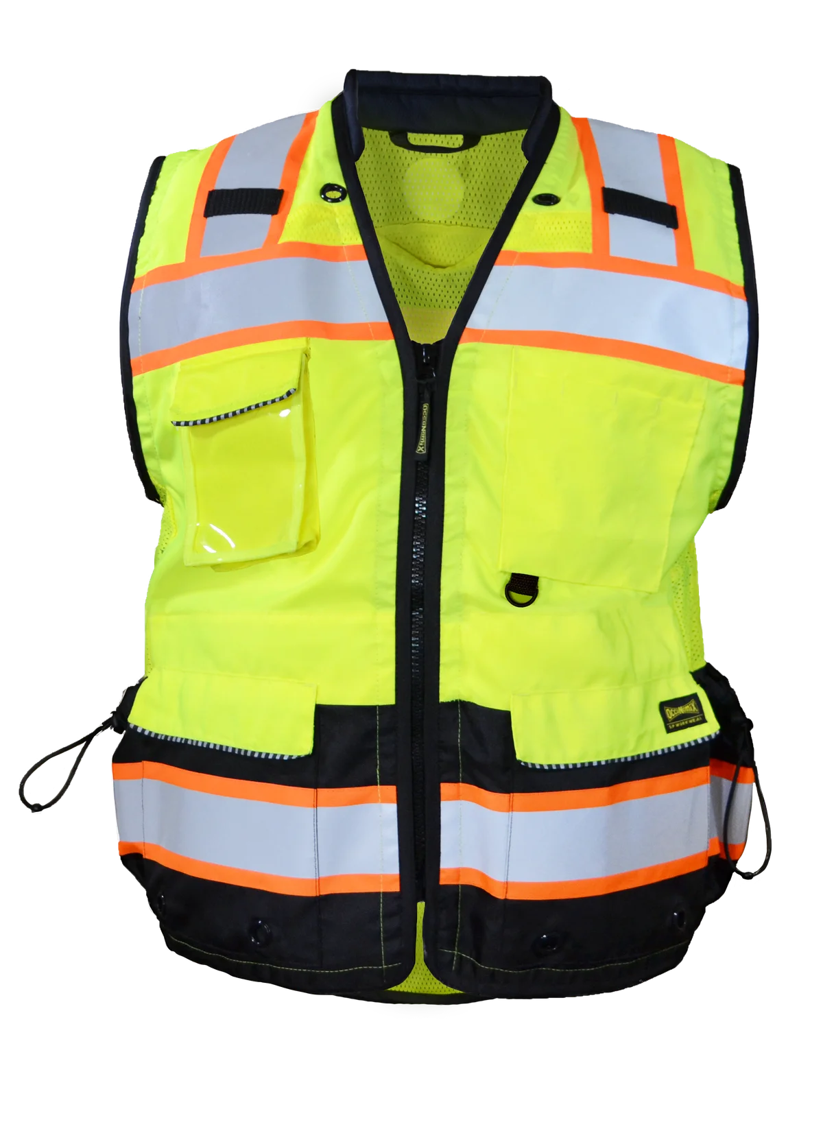 Recycled Sustainable Heavy Duty Surveyor Hi-viz Two Tone Black Bottom Vest, Class 2